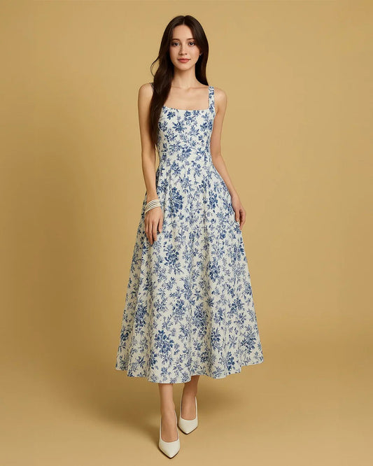 Vestido floral de acampanado con cuello cuadrado