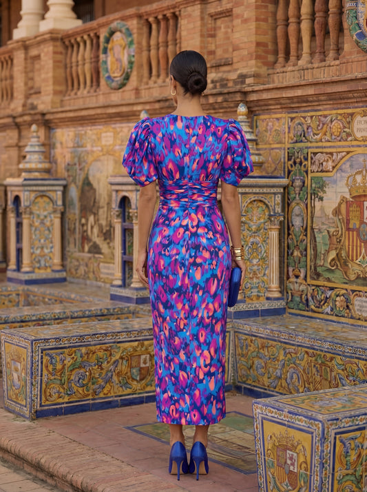 Alba | Vestido midi con estampado floral, elegante y de estilo retro