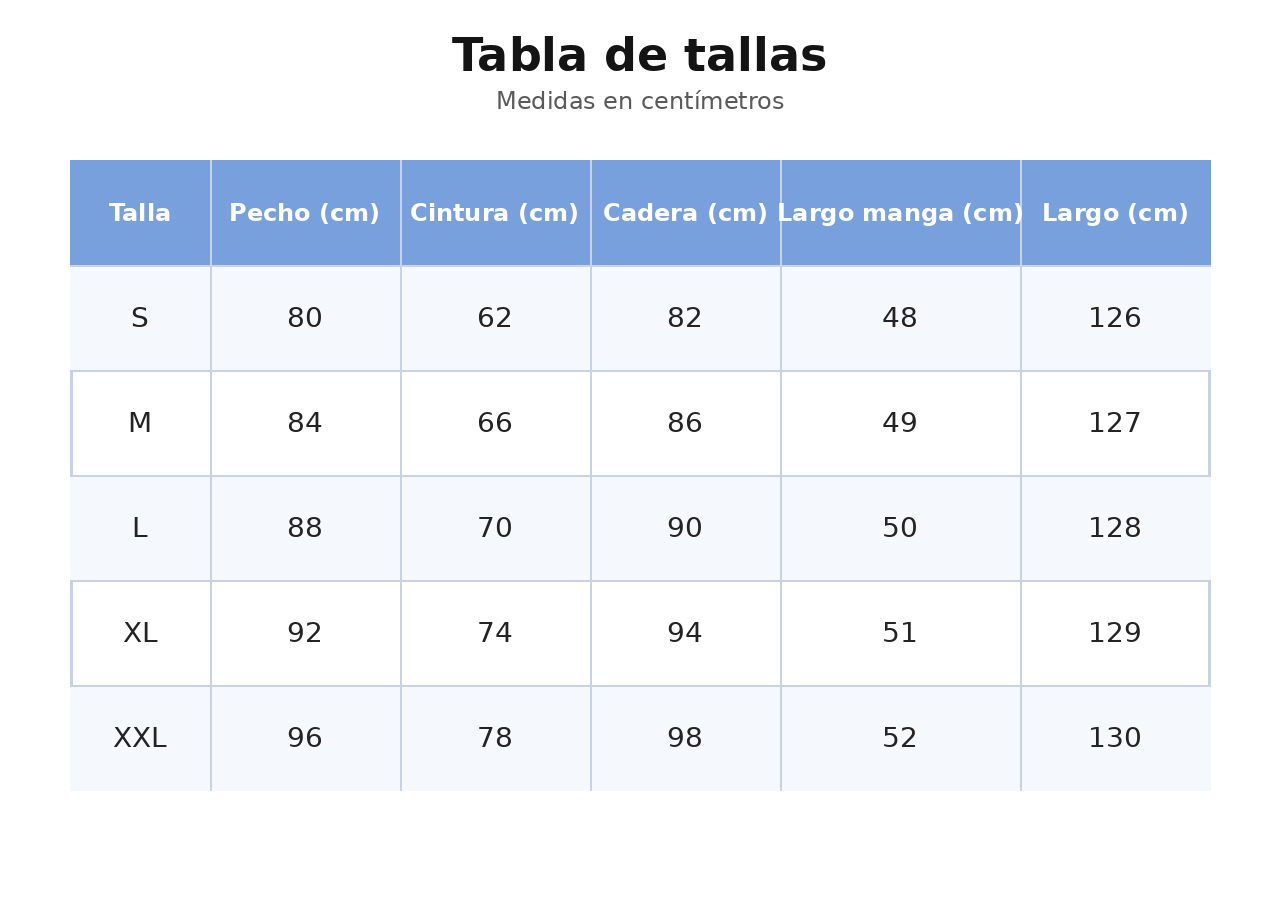 Estoy contenta porque no es la típica tienda que te vende humo. La prenda se ve igual que en la foto, con buenos acabados. Además la guía de tallas me ayudó bastante.