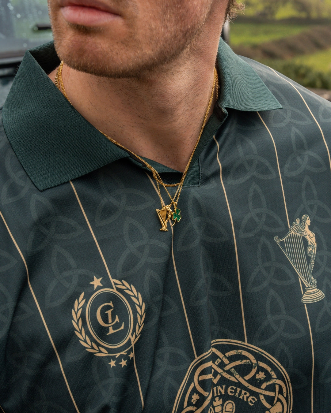 Inspirada en la ropa deportiva irlandesa vintage, la camiseta vintage de Irlanda combina herencia y diseño moderno. Con tres logotipos distintivos de la colección; el escudo, el arpa y el emblema Claddagh, es un guiño atemporal a la identidad irlandesa.