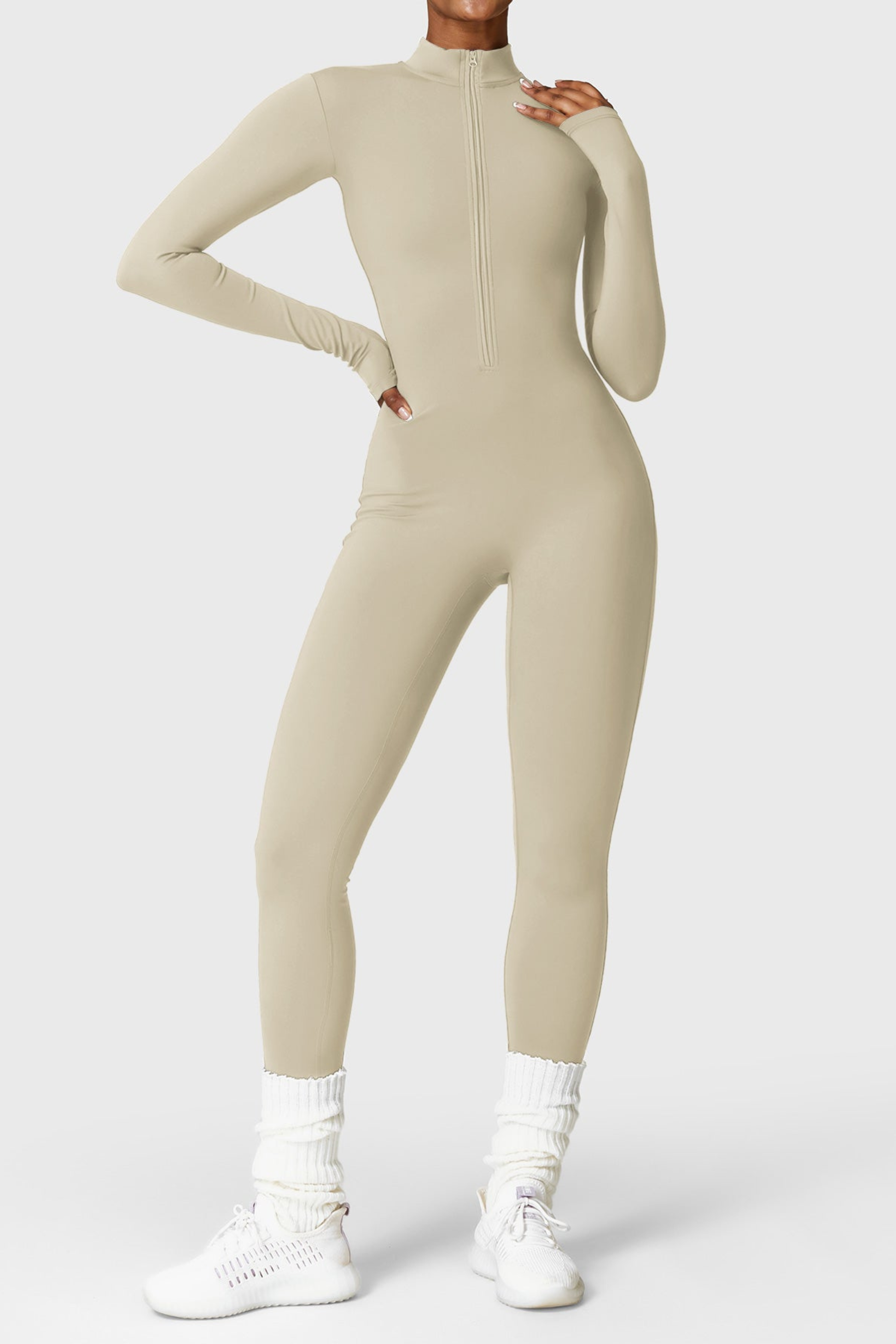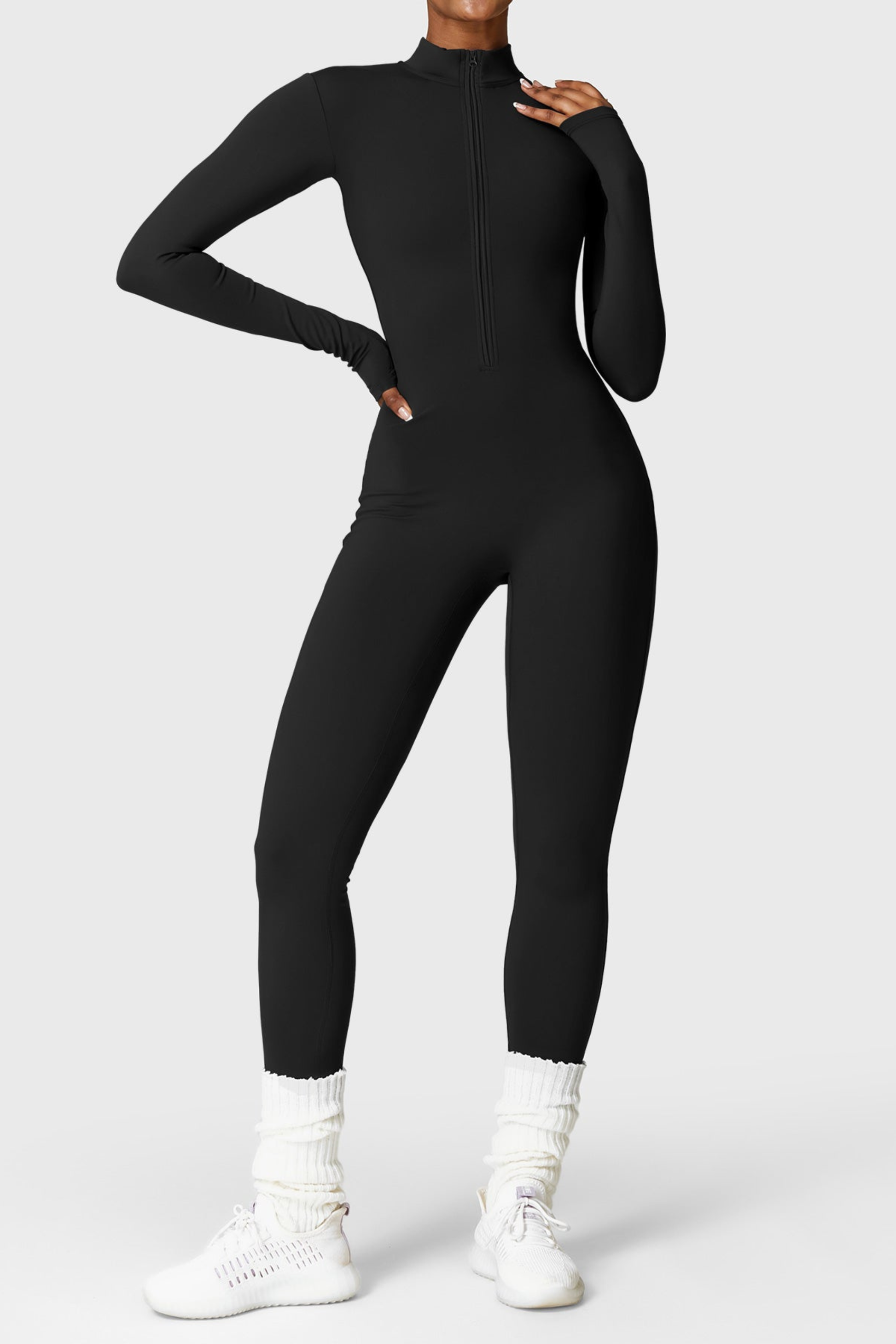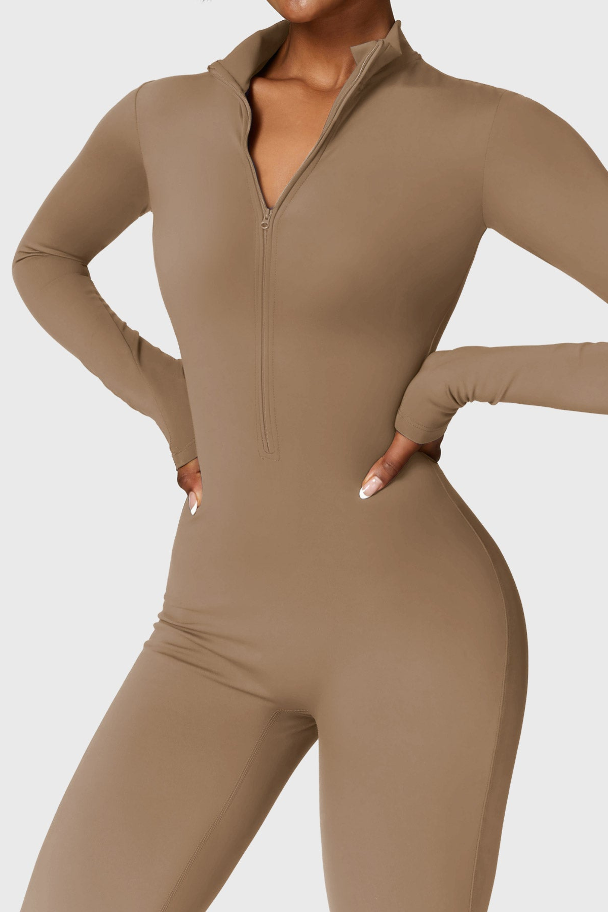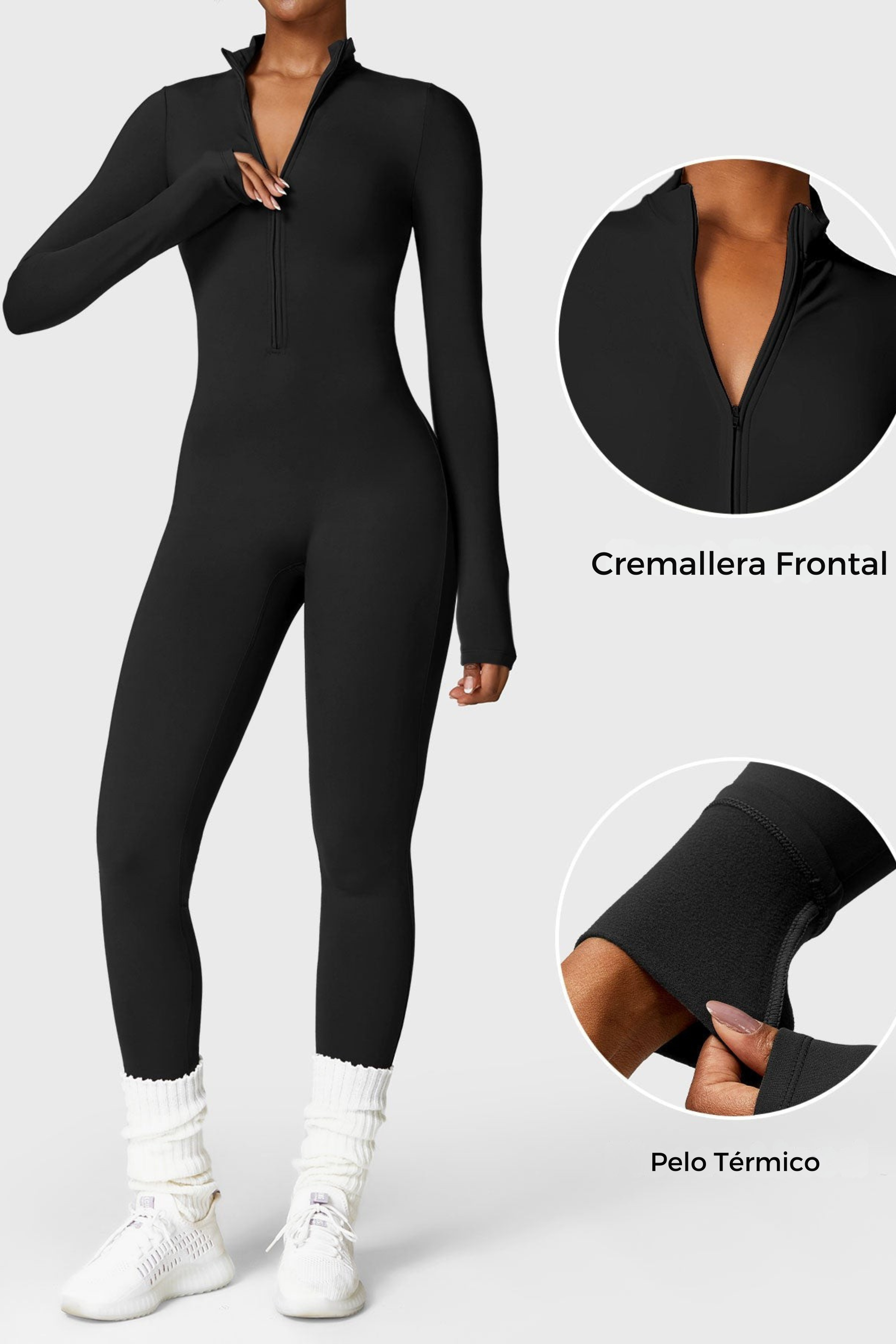 El mono con cremallera de manga larga mejorado cuenta con un interior ligeramente afelpado que aporta mayor confort y calidez sin añadir volumen. Diseñado con cuello alto y cremallera media, presenta una silueta ajustada y favorecedora. Está confeccionado en un tejido ultrasuave, con efecto segunda piel. Ideal para primavera, otoño y días de invierno suave, y fácil de combinar con otras capas cuando hace más frío.