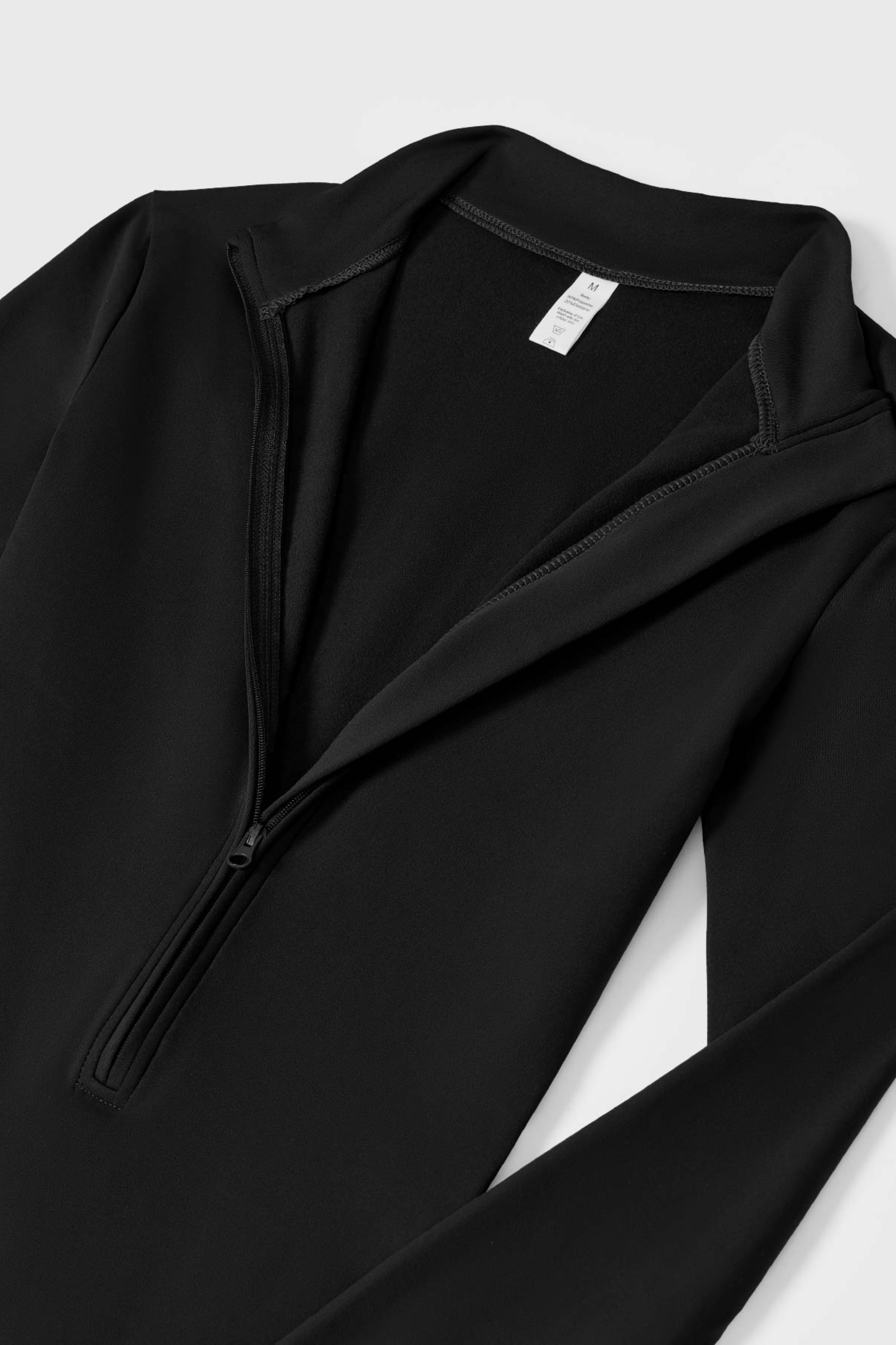 Cuello alto con media cremallera para facilitar el uso y la ventilación