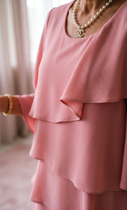 Un vestido que no pasa desapercibido. El satén en verde salvia con efecto shimmer capta la luz con cada movimiento, creando un acabado elegante y muy especial. Las mangas tipo bishop aportan volumen con estilo, el cinturón ajustable marca la cintura a tu gusto y el doble volante en el bajo añade ese toque de movimiento que lo hace aún más favorecedor.